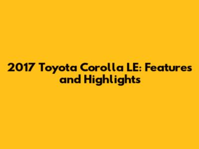 2017 Toyota Corolla LE: Features And Highlights