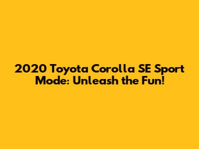The 2020 Toyota Corolla SE is more than just a fuel-efficient and reliable compact car; it's got a little secret weapon for driving enthusiasts: Sport Mode! If you're wondering what that Sport Mode button does and how it can spice up your daily commute, you've come to the right place. Let's dive deep into everything you need to know about the 2020 Corolla SE's Sport Mode, how it works, and when to use it to get the most out of your ride.