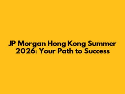 JP Morgan Hong Kong Summer 2026: Your Path To Success