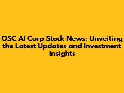 OSC AI Corp Stock: Latest News, Analysis, And Investment Insights
