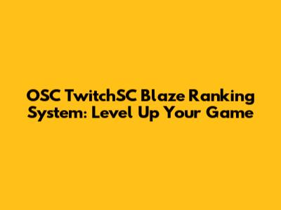 OSC TwitchSC Blaze: Your Guide To Ranking