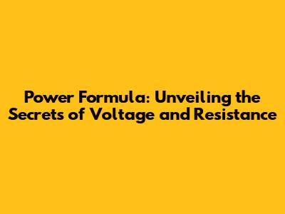 Power Formula: Unveiling The Secrets Of Voltage And Resistance
