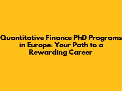 Quantitative Finance PhD Programs In Europe: Your Path