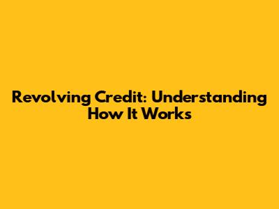 Revolving Credit: Understanding How It Works