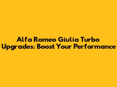 Upgrade Your Alfa Romeo Giulia Turbo: Performance Mods