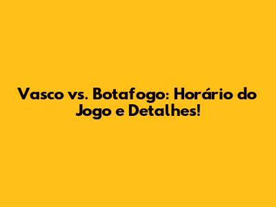 Vasco Vs. Botafogo: Horário Do Jogo E Detalhes!