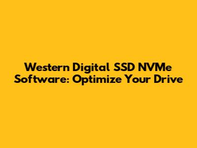 Western Digital SSD NVMe Software: Optimize Your Drive